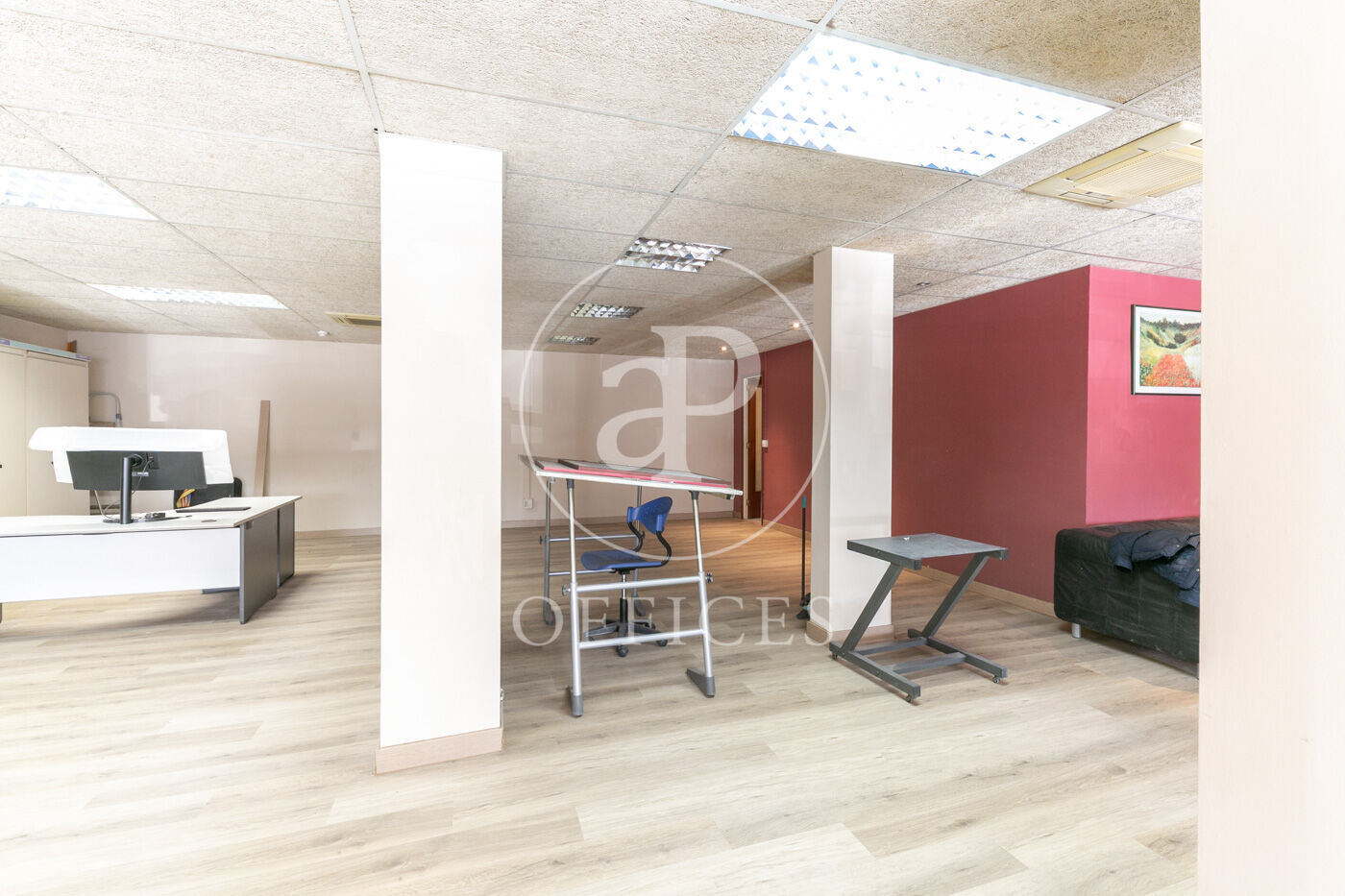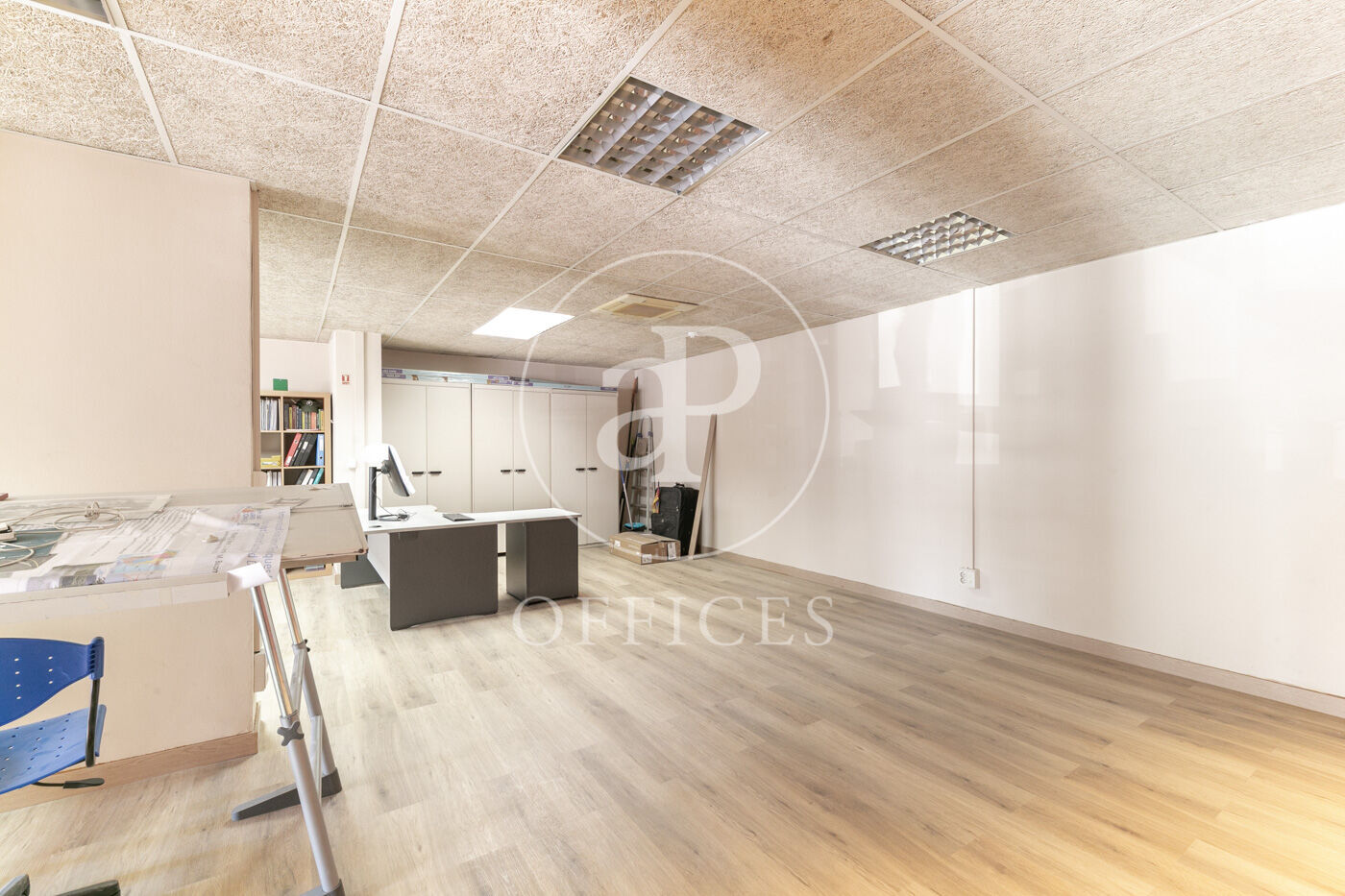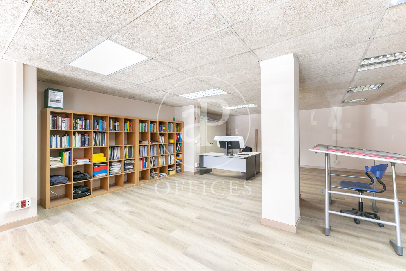 Se divide en dos partes diferenciadas, open space para 10 personas, despacho directivo y sala de reuniones.