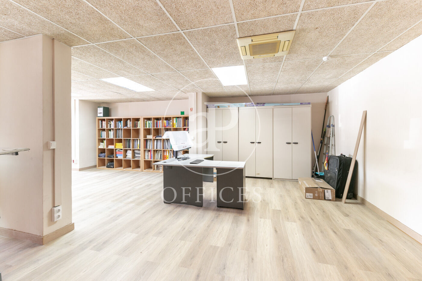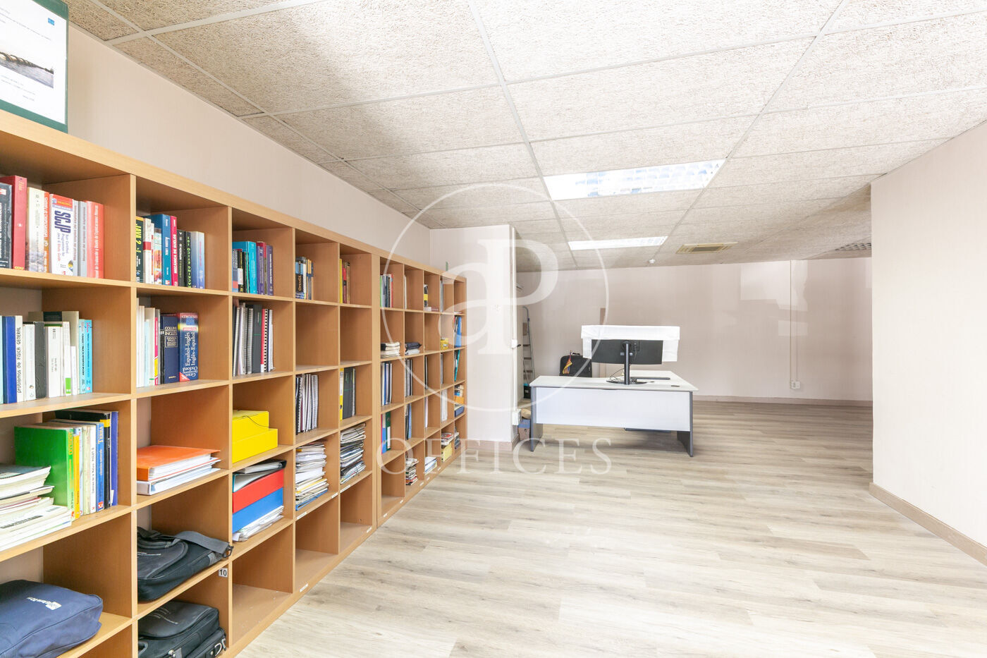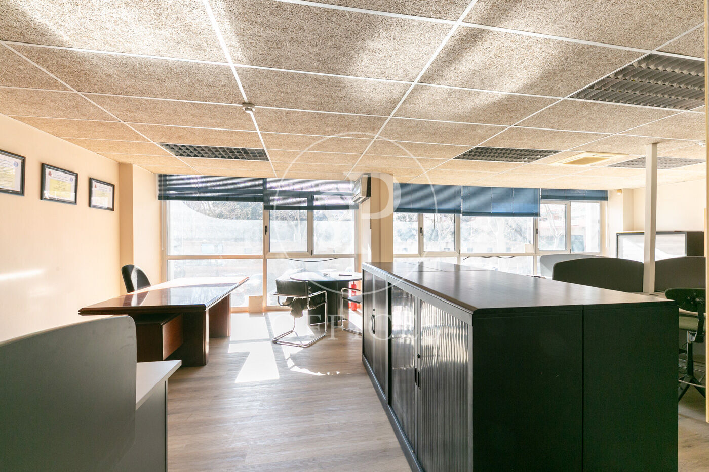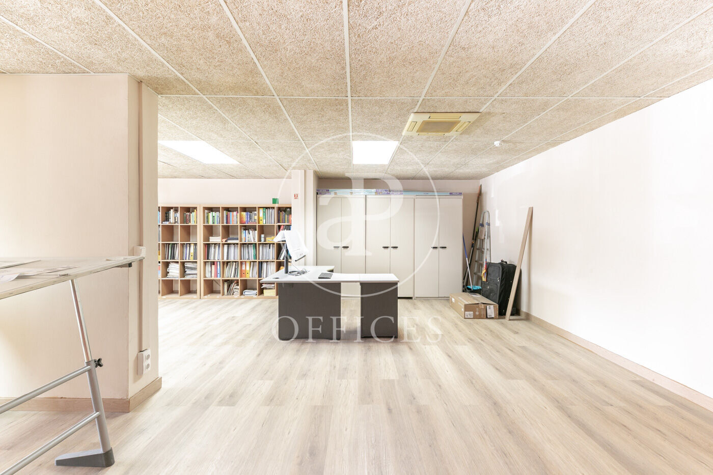 Se divide en dos partes diferenciadas, open space para 10 personas, despacho directivo y sala de reuniones.