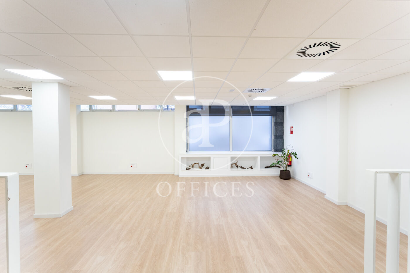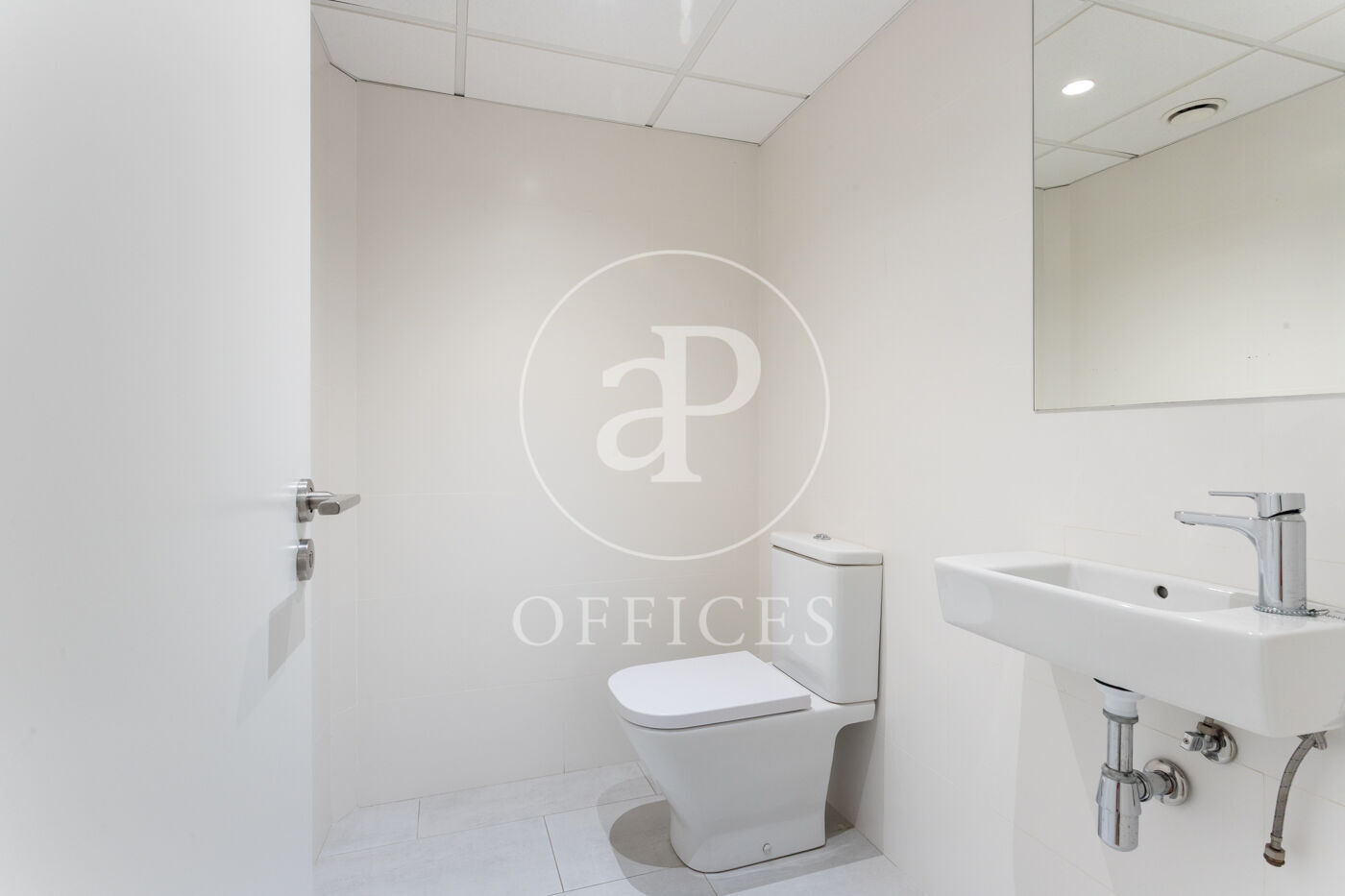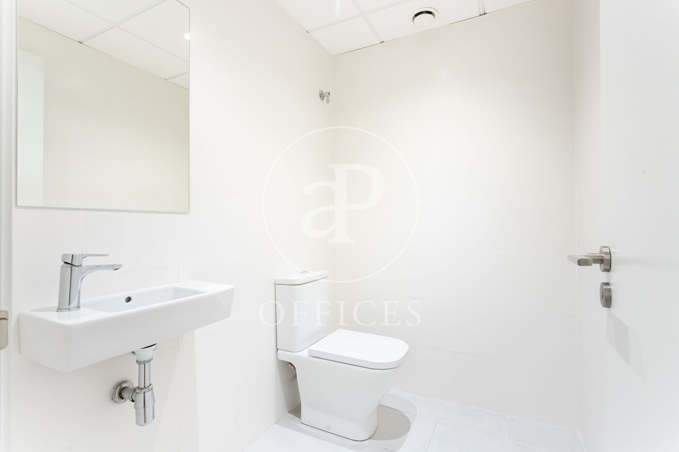 Oficina diàfana completament reformada, llesta per entrar, amb una excel·lent imatge corporativa. L’oficina, amb una superfície de 150 m², s’ubica a la planta i gaudeix d’orientació a dos vents. Es troba en molt bon estat de conservació i presenta una distribució basada en una gran sala diàfana, àmplia i molt lluminosa, que permet una gran flexibilitat i adaptació a diferents necessitats de treball. Disposa a més de dos banys privatius dins de la pròpia oficina i un office.