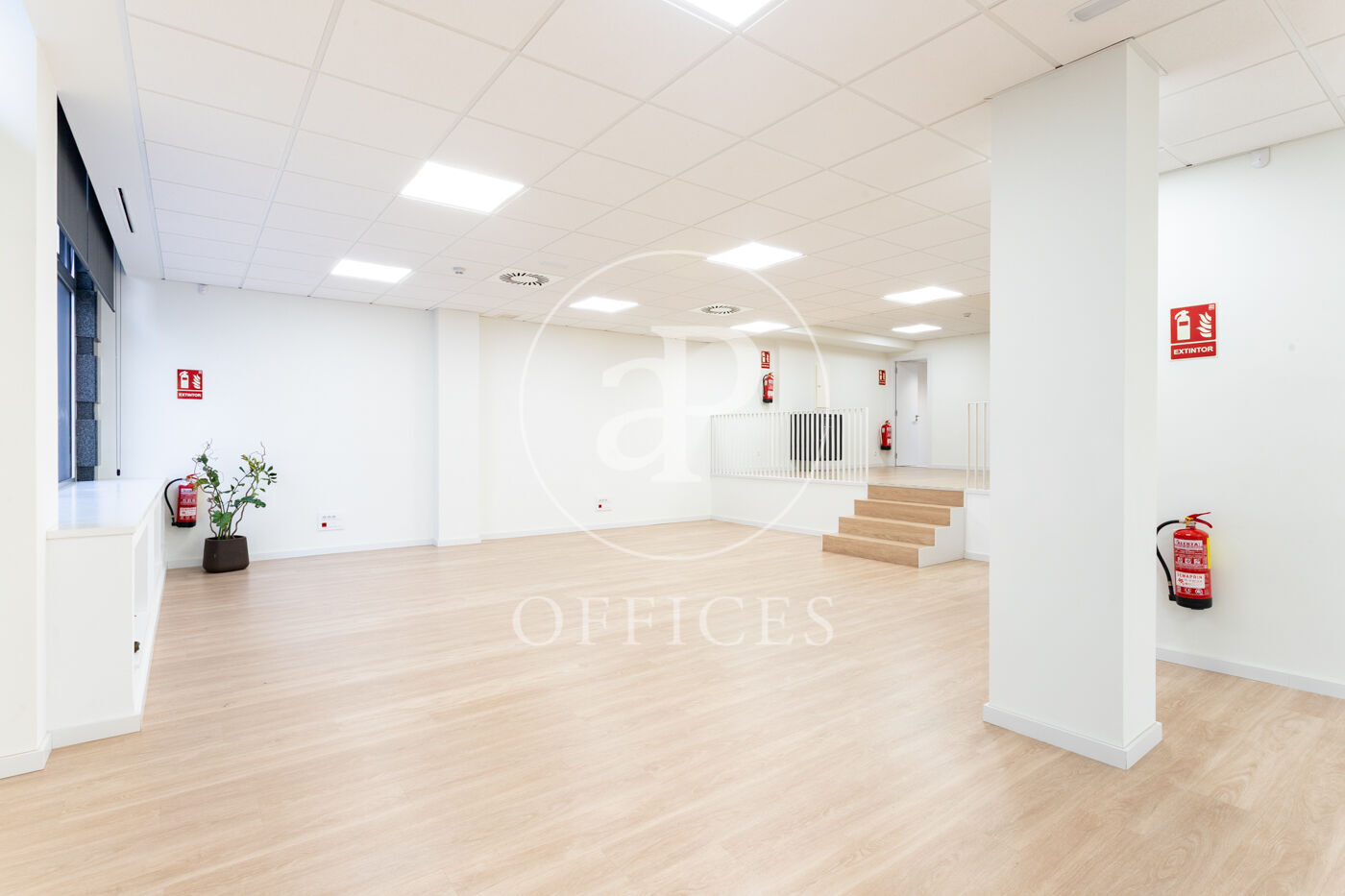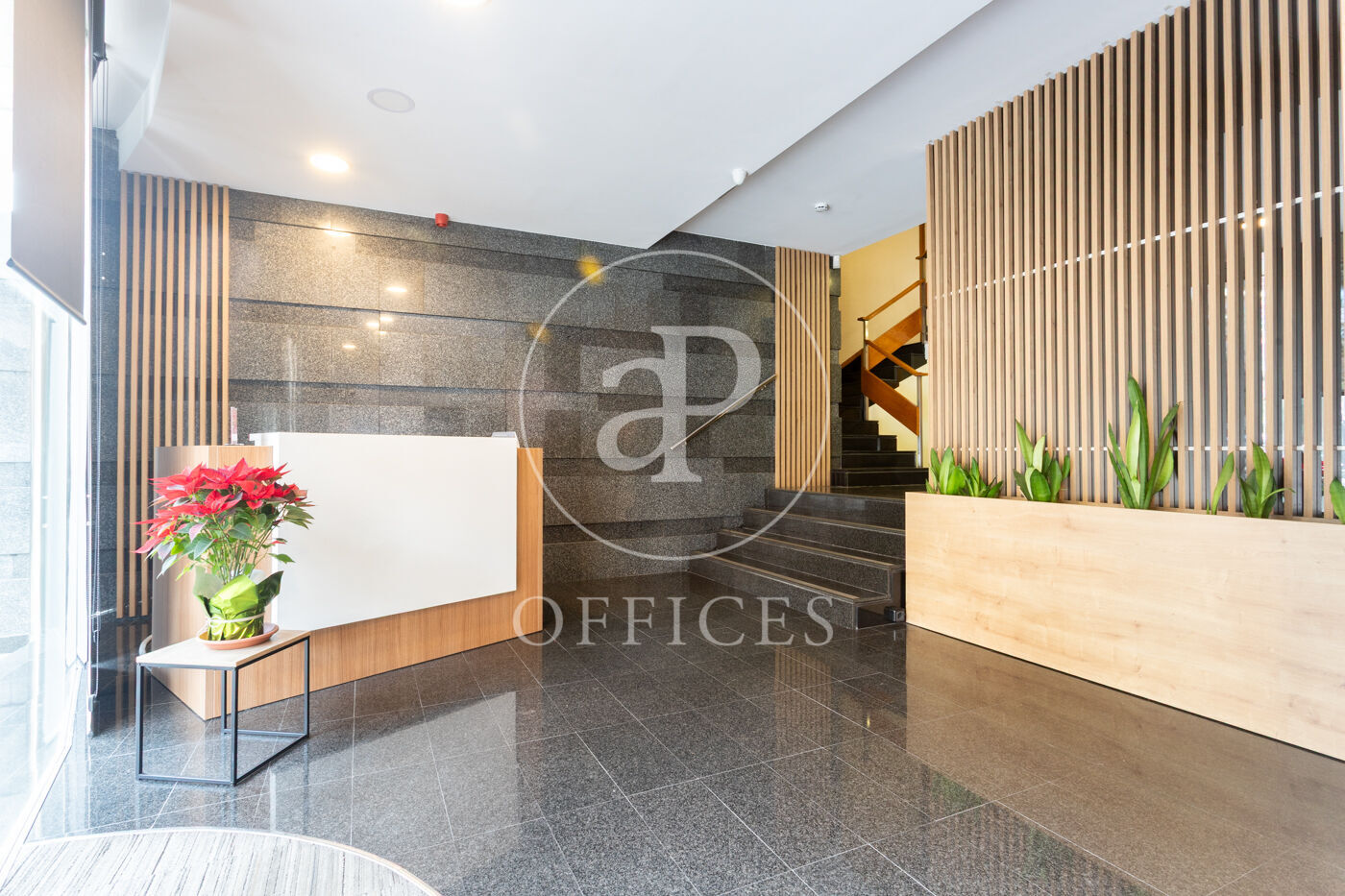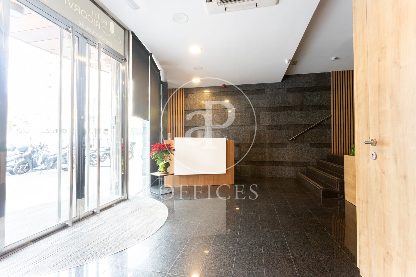 Oficina diàfana completament reformada, llesta per entrar, amb una excel·lent imatge corporativa. L’oficina, amb una superfície de 150 m², s’ubica a la planta i gaudeix d’orientació a dos vents. Es troba en molt bon estat de conservació i presenta una distribució basada en una gran sala diàfana, àmplia i molt lluminosa, que permet una gran flexibilitat i adaptació a diferents necessitats de treball. Disposa a més de dos banys privatius dins de la pròpia oficina i un office.