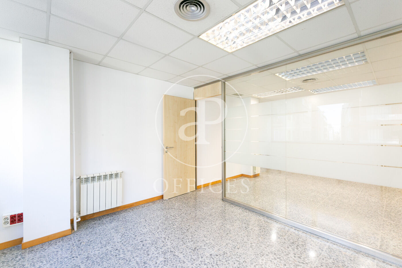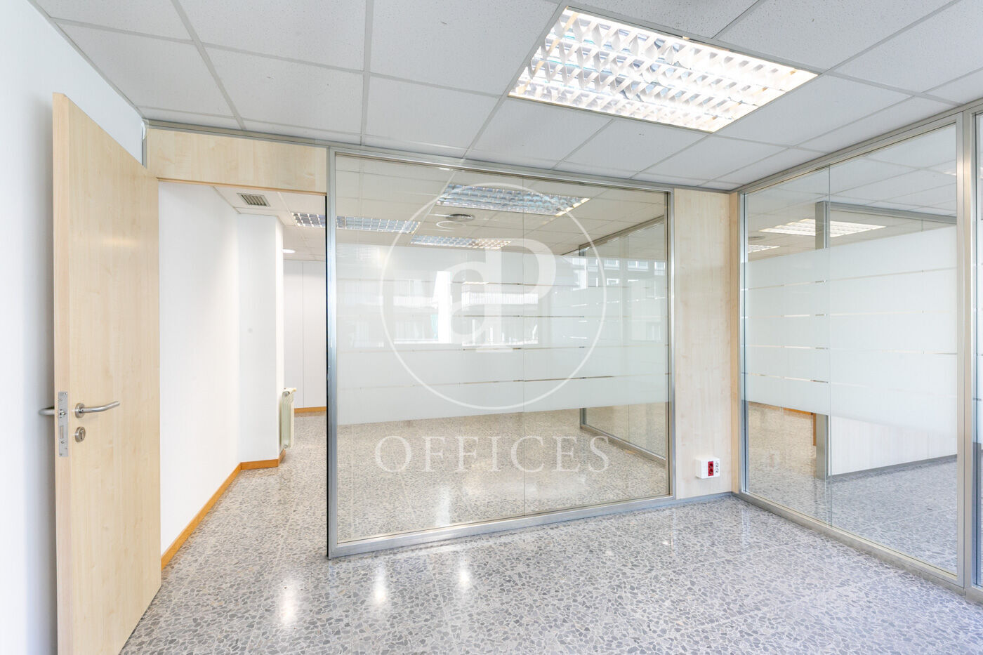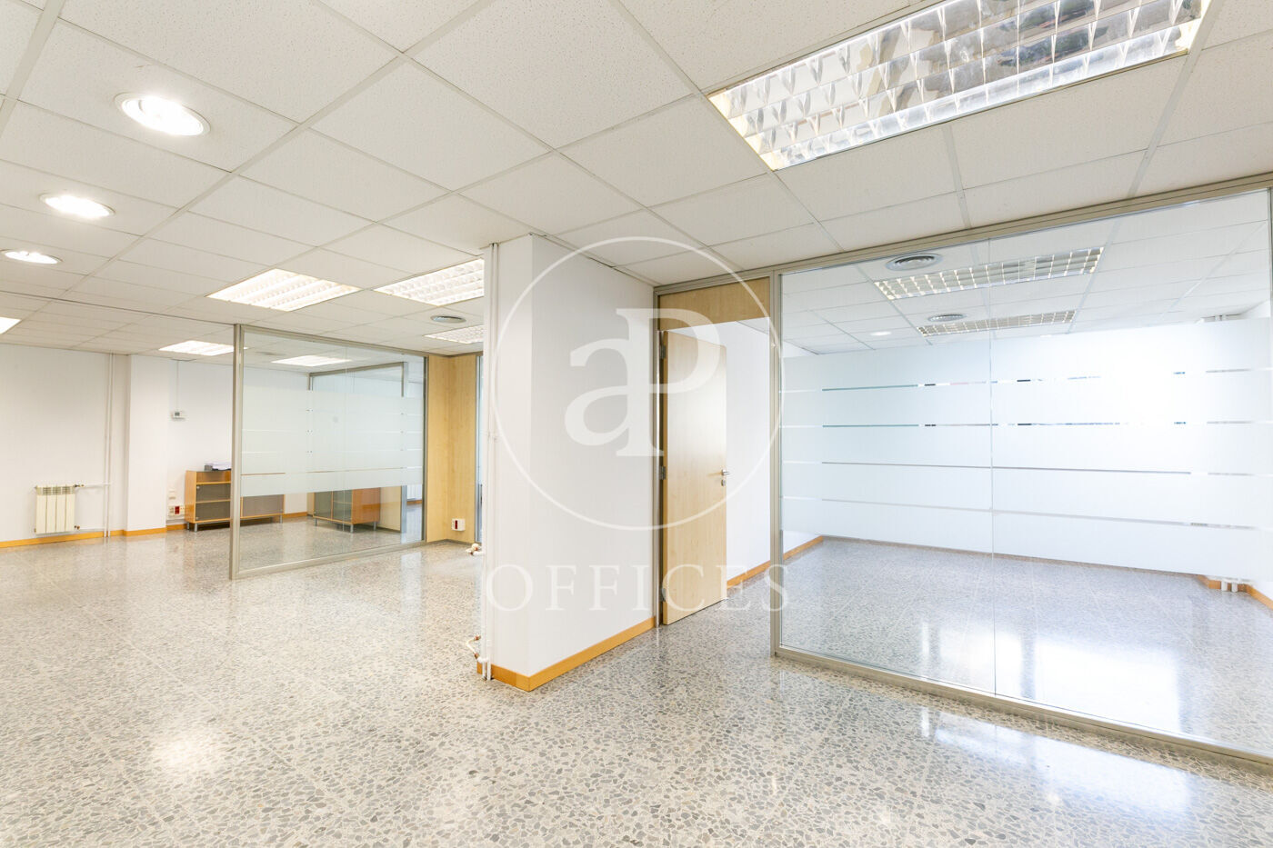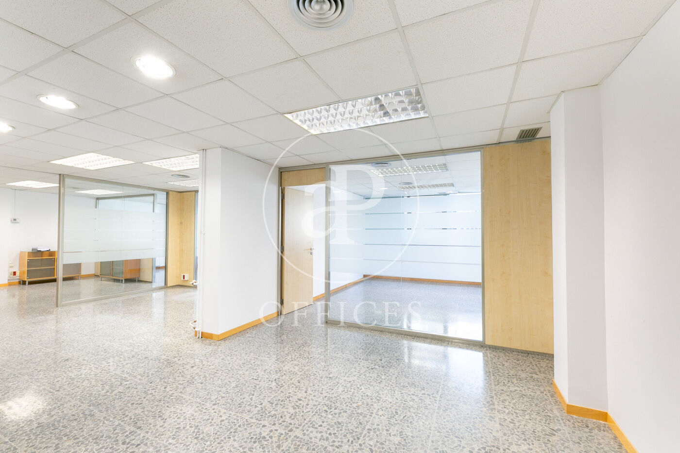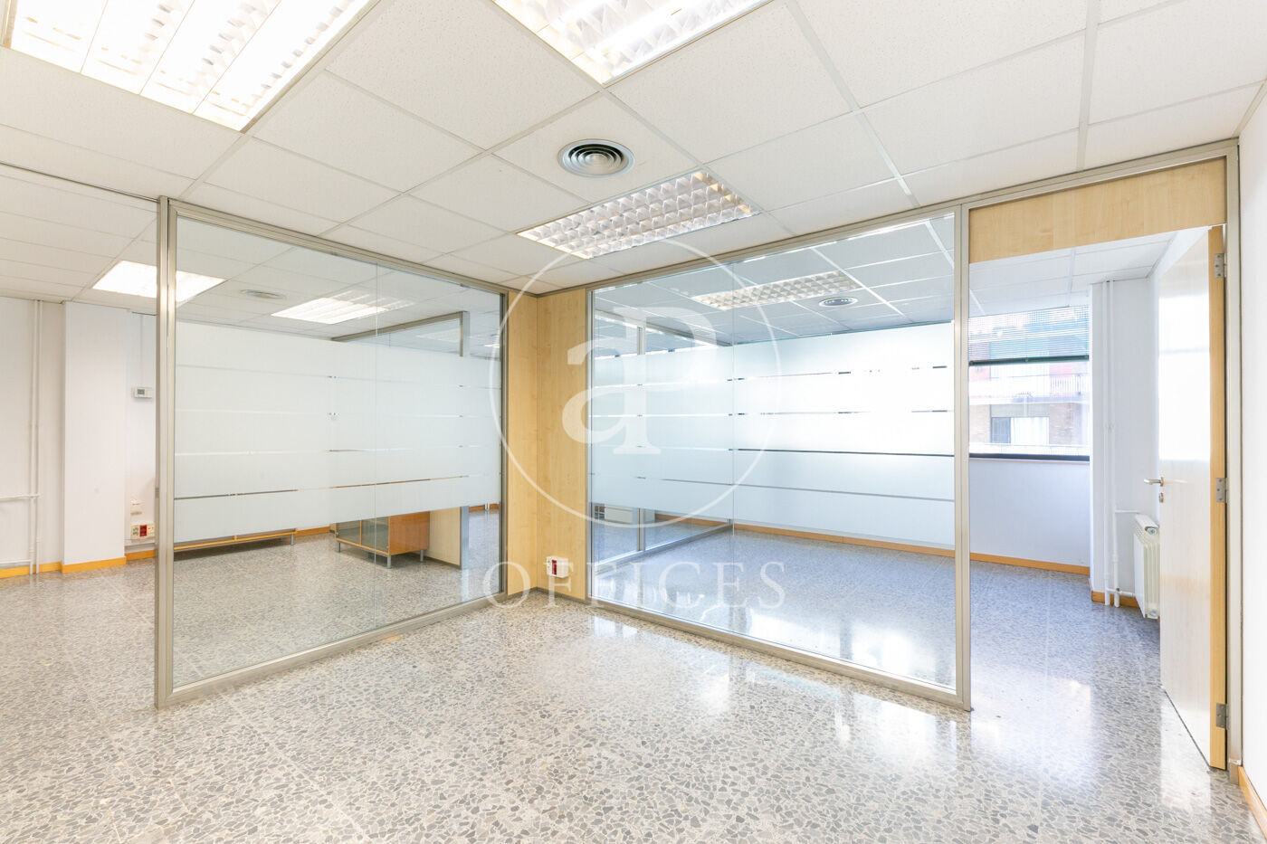 L’espai, amb una superfície de 170 m² i orientació al carrer, destaca per la seva gran lluminositat. La distribució s’organitza mitjançant mampares acristalades, amb una àrea diàfana de treball i tres despatxos. Disposa de dos lavabos, office i sala tècnica (rack).