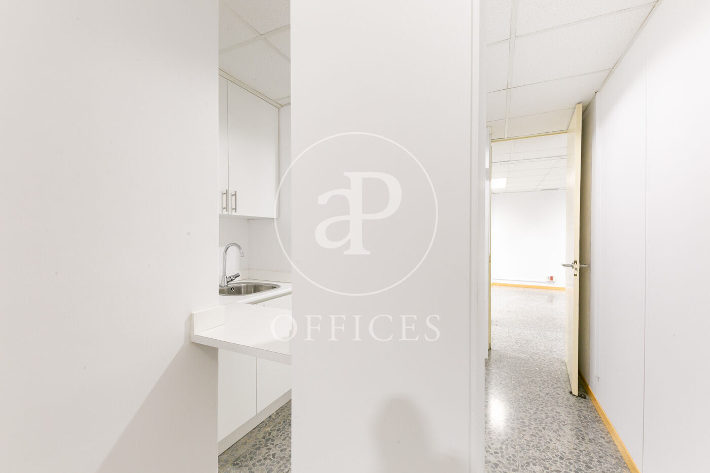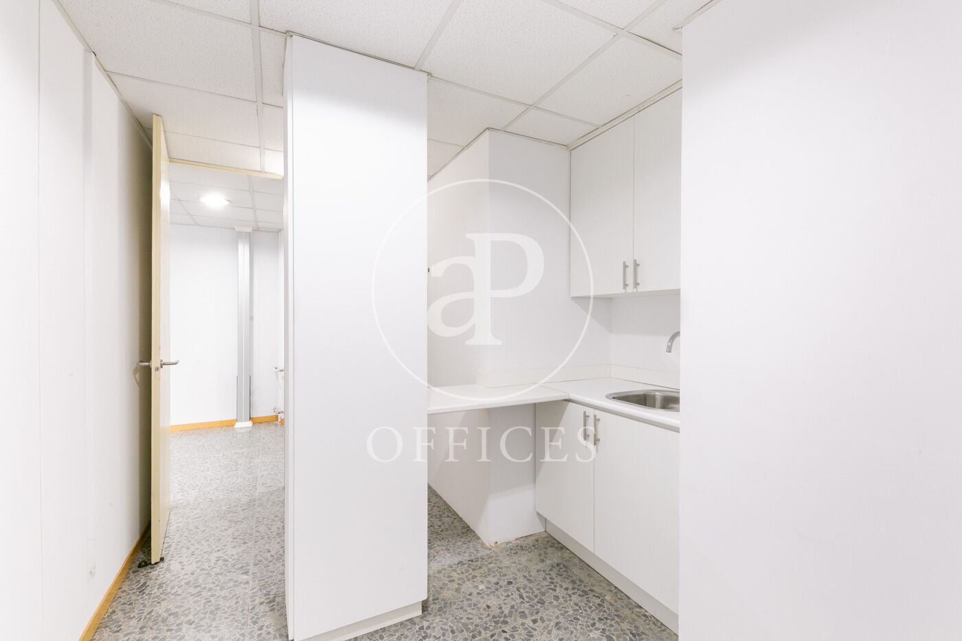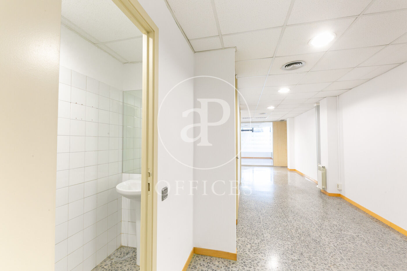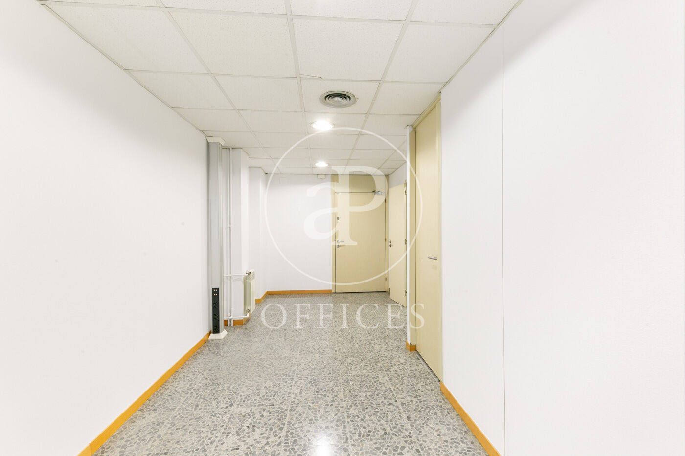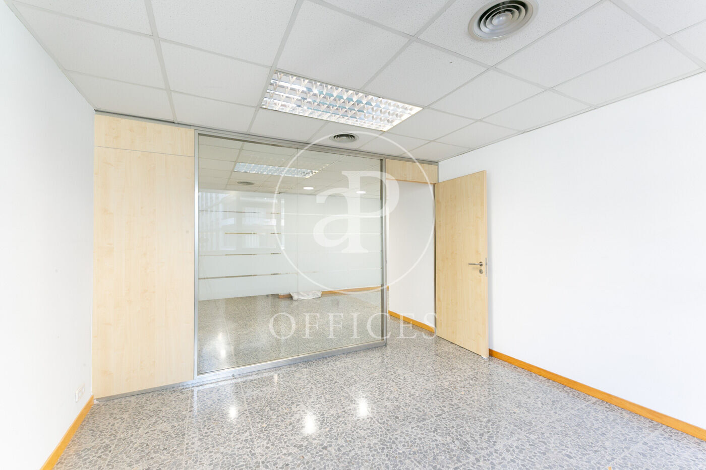 L’espai, amb una superfície de 170 m² i orientació al carrer, destaca per la seva gran lluminositat. La distribució s’organitza mitjançant mampares acristalades, amb una àrea diàfana de treball i tres despatxos. Disposa de dos lavabos, office i sala tècnica (rack).