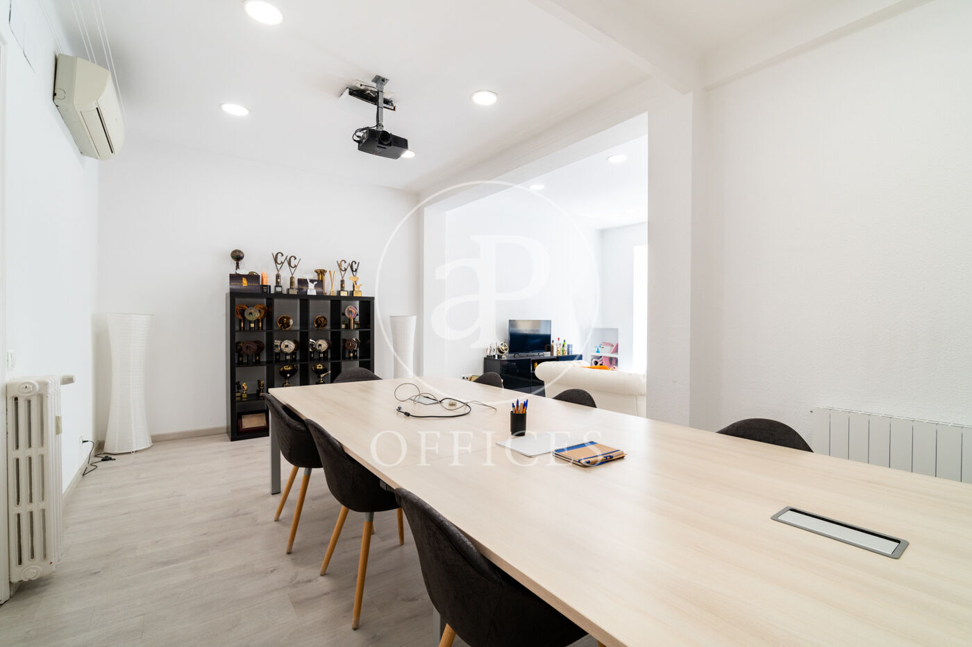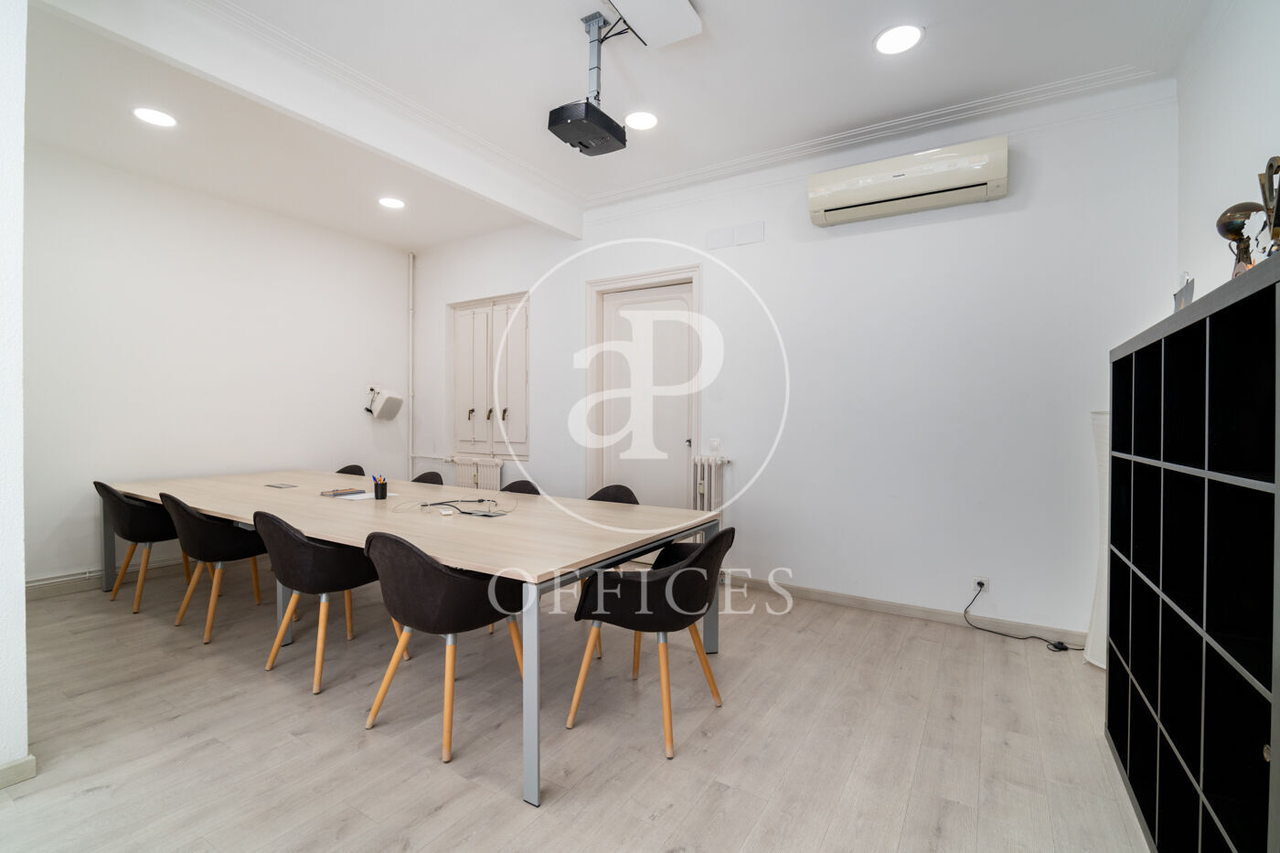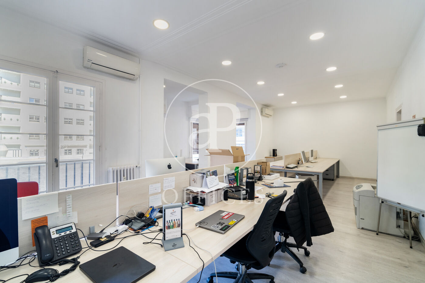 Amb una superfície total de 300 m², l'oficina està distribuïda en múltiples despatxos, recepció i sales, equipada amb sostre fals, climatització fred/calor, múltiples armaris encastats, bon estat del terra i ben il·luminada.
