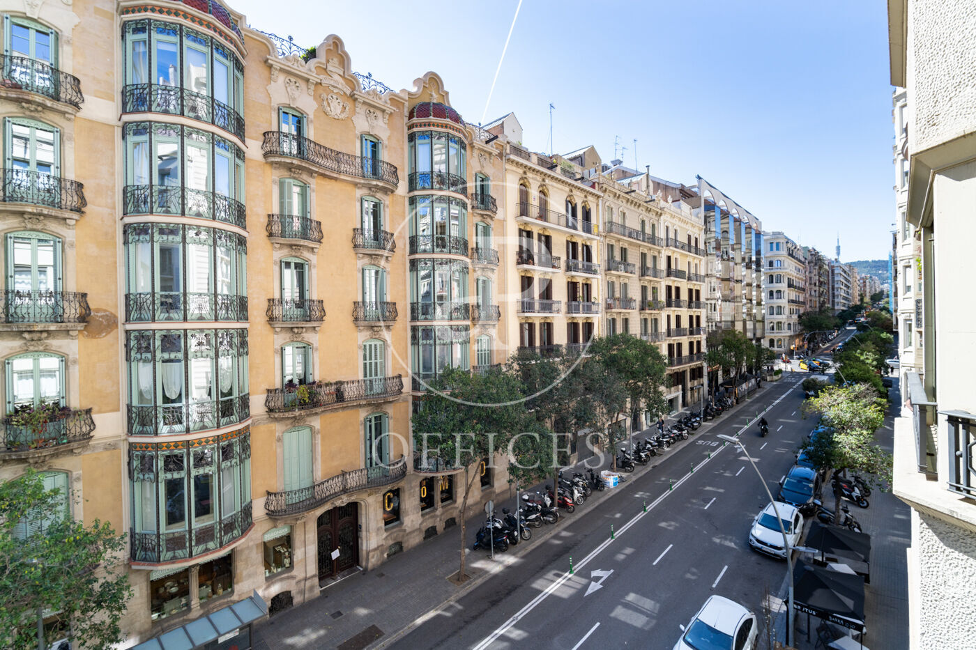 L'edifici, d'espectacular façana, ofereix lluminositat i vistes a Muntaner.